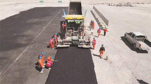 在乌海抽水蓄能电站项目供应中,辽河石化水工沥青顺利完成摊铺试验。产品动力黏度为1.729帕·秒,黏度适宜,与集料裹覆均匀,易于摊铺。低温冻断温度低至零下49摄氏度,高温稳定性优异,抗老化性能优于设计指标50%以上,产品性能突出,全方位保障了工程施工效果及耐久性。